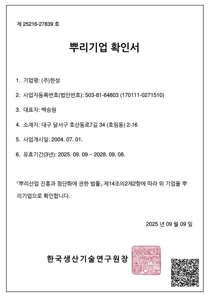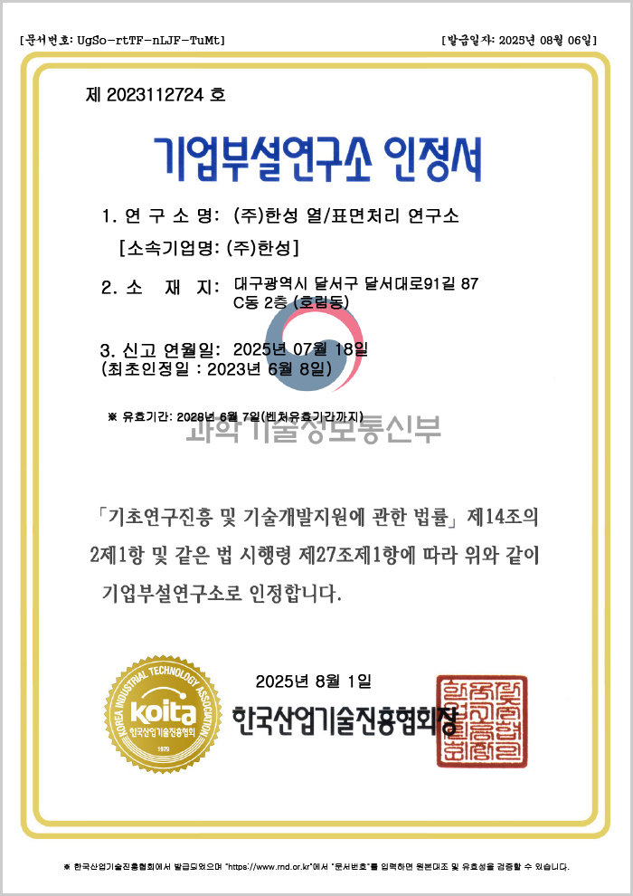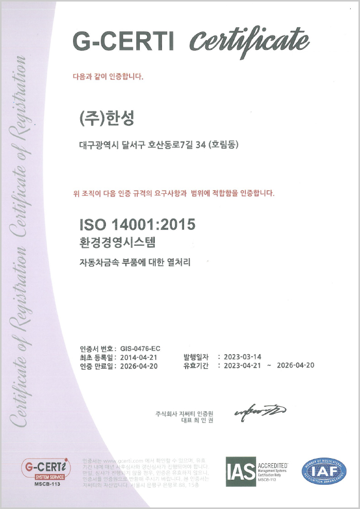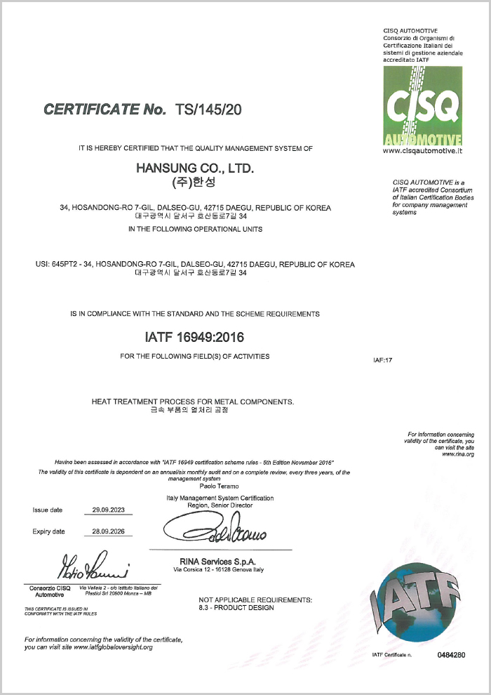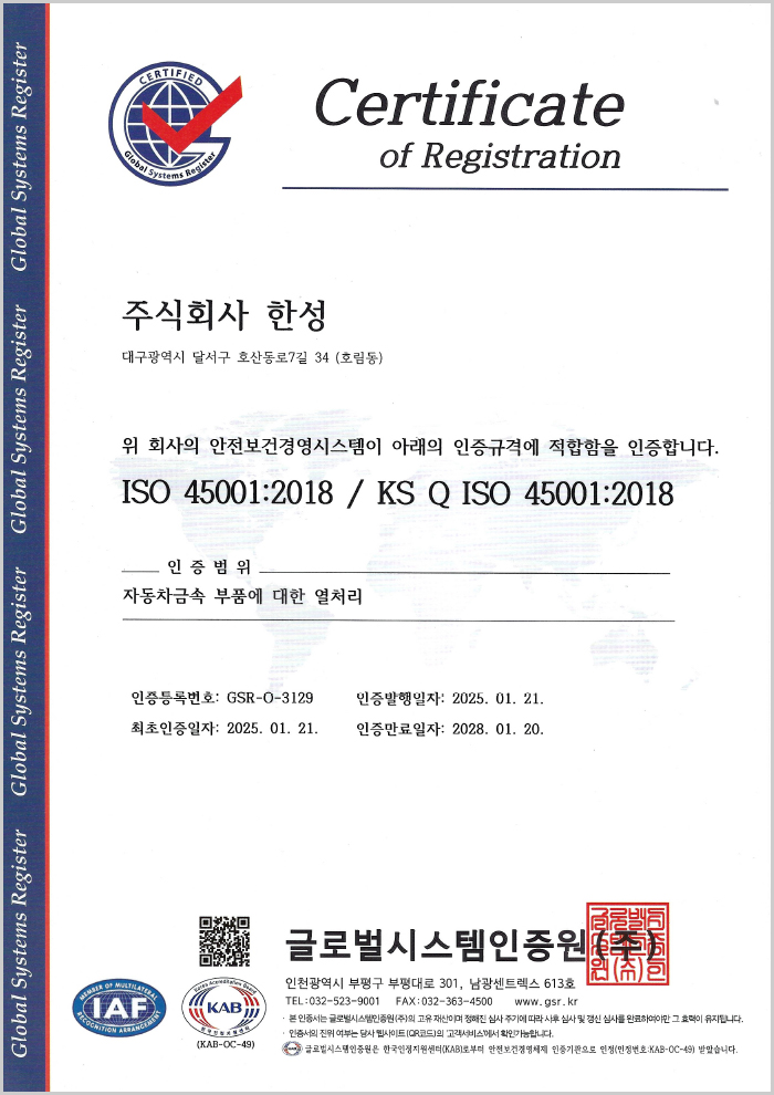 HANSUNG Co., Ltd., established in 1995, is a specialized heat treatment company for automotive components, trusted by major global automakers and parts suppliers through long-standing partnerships.