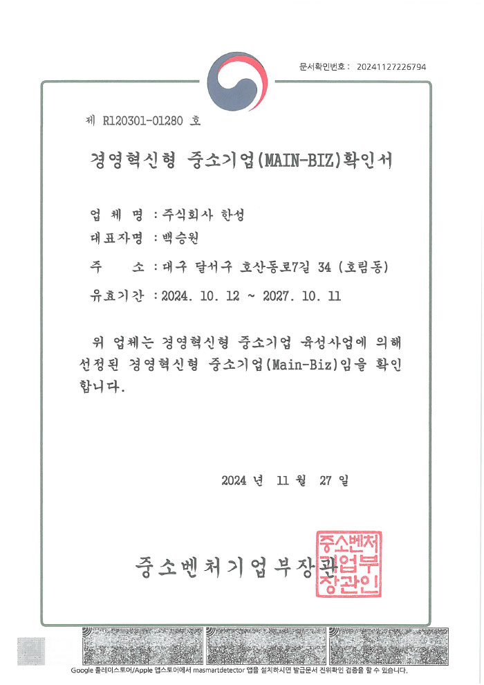 To ensure precise and objective quality assurance, HANSUNG operates a 100% inspection system throughout all processes with over 10 types of advanced testing equipment.